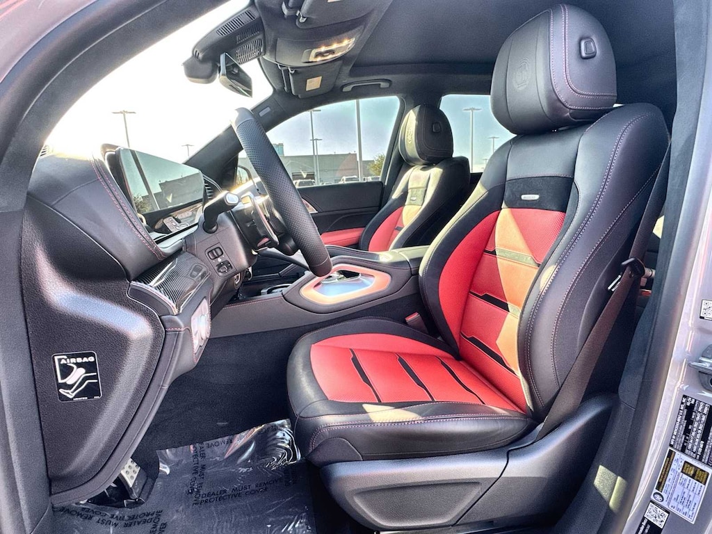 Heated Leather Seats, NAV, Sunroof, Panoramic Roof, Full-Time 4MATIC® All-Wheel, Turbo, WHEELS: 22 AMG® CROSS-SPOKE FORGED... DRIVER ASSISTANCE PACKAGE. MANUFAKTUR Alpine Grey exterior and Red Pepper/Black interior, AMG® GLE 63 S trim.