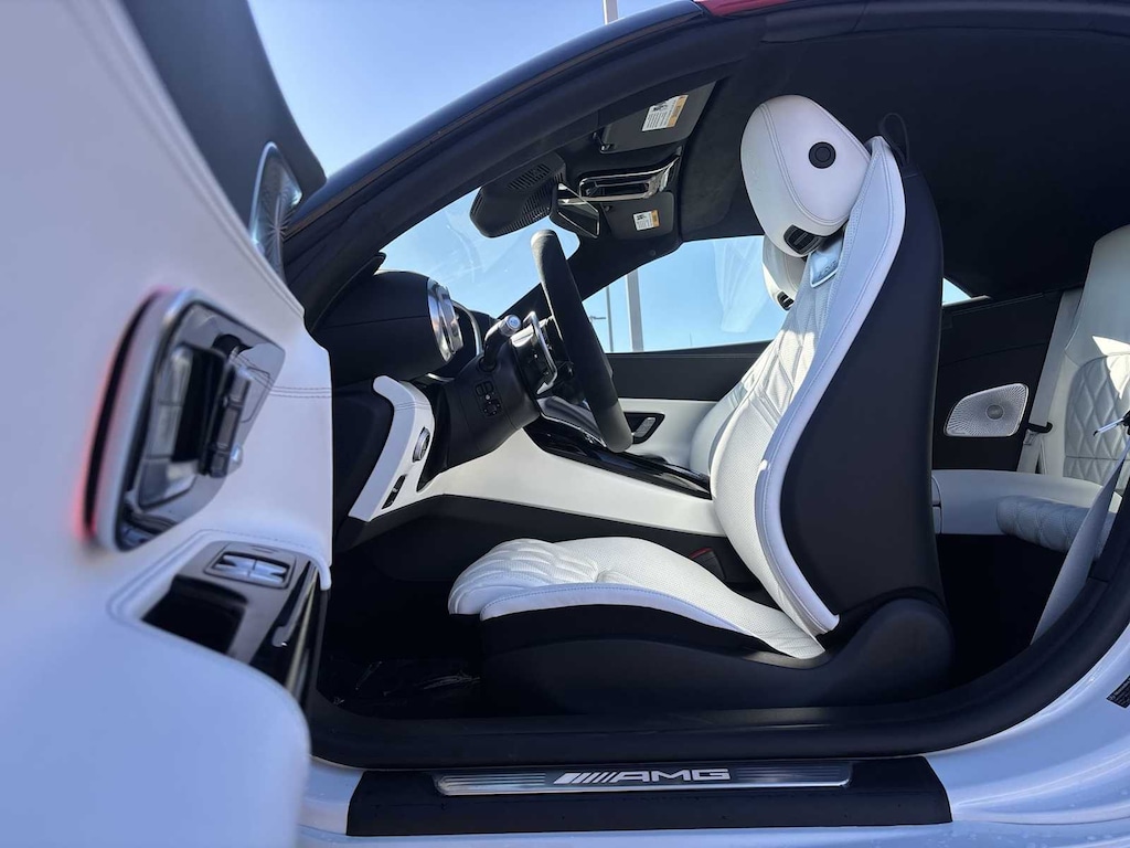 Leather Seats, Navigation, Quad Bucket Seats, Power Liftgate, Heated Driver Seat Mercedes-Benz AMG® SL 43 with MANUFAKTUR Moonlight White Metallic exterior and Crystal White/Black interior features a 4 Cylinder Engine with 416 HP at 6750 RPM*.