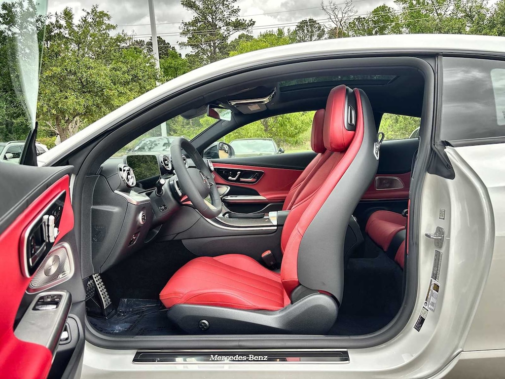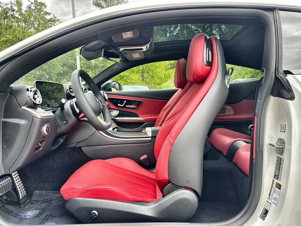 Navigation, Sunroof, Panoramic Roof, Full-Time 4MATIC® All-Wheel, Quad Bucket Seats Mercedes-Benz CLE 450 with MANUFAKTUR Moonlight White Metallic exterior and Power Red/Black interior features a Straight 6 Cylinder Engine with 375 HP at 5500 RPM*.